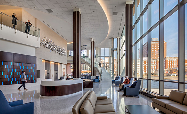Medical planning, architecture, interior architecture, engineering (MEP and structural, lighting design, landscape architecture, and environmental branding: SmithGroup
